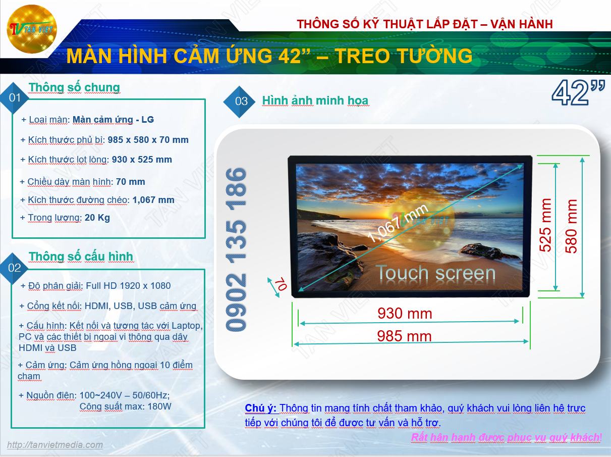 Tân Việt cho thuê màn hình cảm ứng 42 inch đời mới, cấu hình cao, nhiều tính năng, kỹ thuật viên chuyên nghiệp, dịch vụ tận nơi, giá cạnh tranh